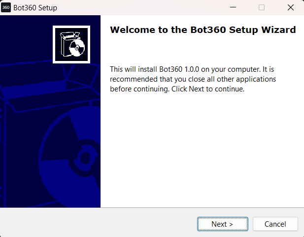Download the .exe file of Bot360 from the official website: https://www.bot360.net