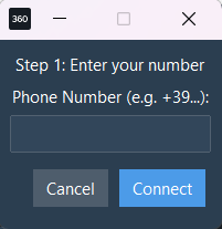 - Enter your Telegram phone number (including international code, e.g. +39 for Italy).